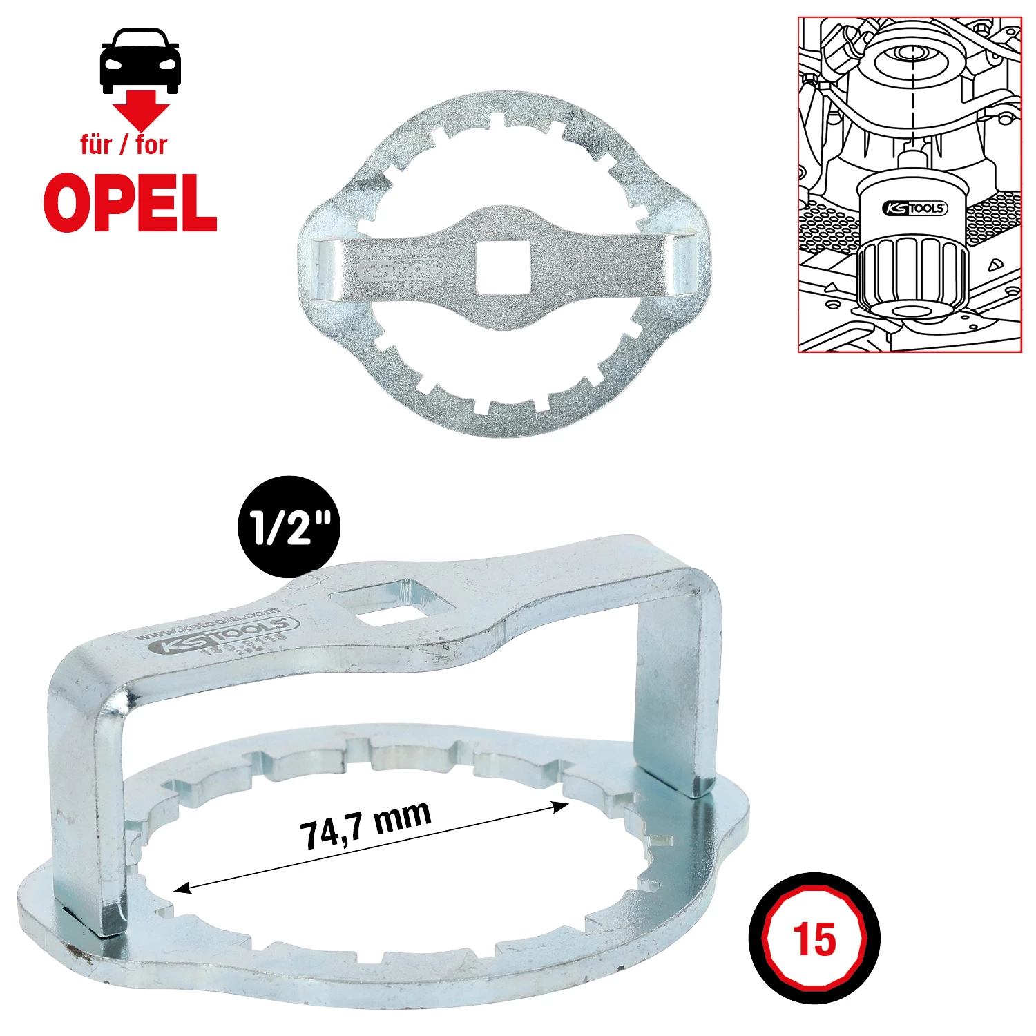 1/2" oljefilternyckel Ø 74 mm / 15 spår för Opel