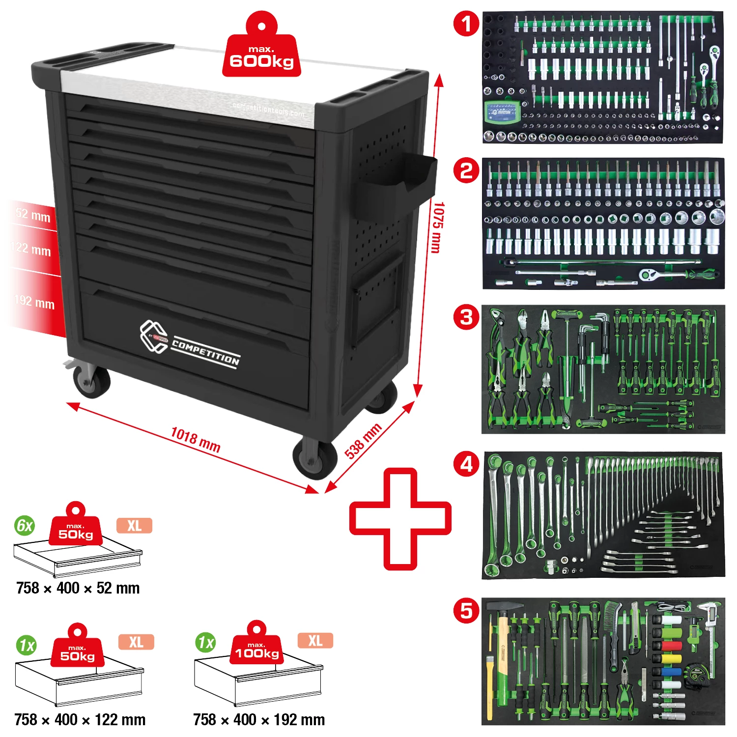 COMPETITION verkstadsvagn med 8 lådor och 434-delars premiumverktyg